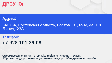 ДРСУ-Юг по адресу 346734, Ростовская область, Ростов-на-Дону, ул. 1-я Линия, 23А в дальнейшем Организация, размещена в следующих категориях: