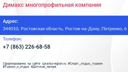 Димакс, многопрофильная компания по адресу 344010, Ростовская область, Ростов-на-Дону, Петренко, 6 в дальнейшем Организация, размещена в следующих категориях: