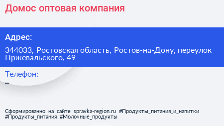 Домос, оптовая компания по адресу 344033, Ростовская область, Ростов-на-Дону, переулок Пржевальского, 49 в дальнейшем Организация, размещена в следующих категориях: