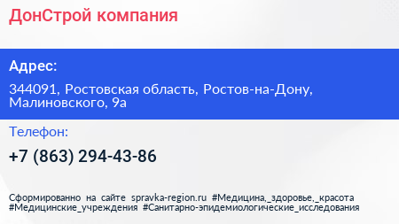 ДонСтрой, компания по адресу 344091, Ростовская область, Ростов-на-Дону, Малиновского, 9а в дальнейшем Организация, размещена в следующих категориях:
