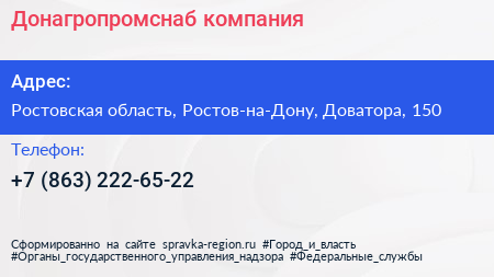 Донагропромснаб, компания по адресу Ростовская область, Ростов-на-Дону, Доватора, 150 в дальнейшем Организация, размещена в следующих категориях: