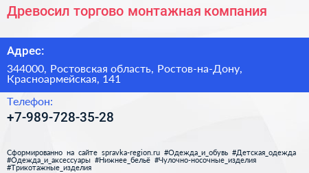 Древосил, торгово-монтажная компания по адресу 344000, Ростовская область, Ростов-на-Дону, Красноармейская, 141 в дальнейшем Организация, размещена в следующих категориях: