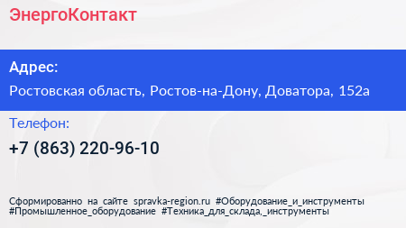 ЭнергоКонтакт по адресу Ростовская область, Ростов-на-Дону, Доватора, 152а в дальнейшем Организация, размещена в следующих категориях: