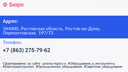 Ф-Бюро по адресу 344000, Ростовская область, Ростов-на-Дону, Лермонтовская, 197/73 в дальнейшем Организация, размещена в следующих категориях: