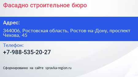Фасадно-строительное бюро по адресу 344006, Ростовская область, Ростов-на-Дону, проспект Чехова, 45 в дальнейшем Организация, размещена в следующих категориях:
