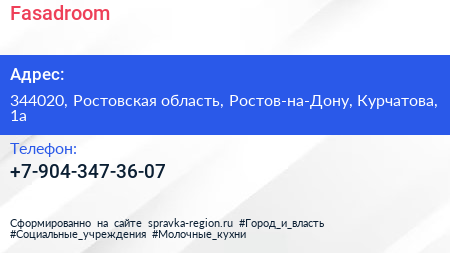 Fasadroom по адресу 344020, Ростовская область, Ростов-на-Дону, Курчатова, 1а в дальнейшем Организация, размещена в следующих категориях: