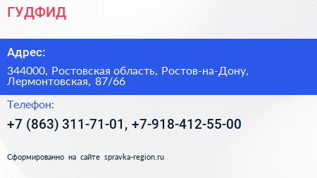 ГУДФИД по адресу 344000, Ростовская область, Ростов-на-Дону, Лермонтовская, 87/66 в дальнейшем Организация, размещена в следующих категориях: