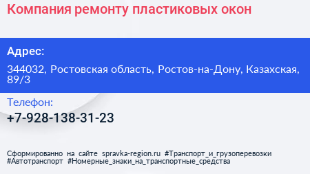 Компания ремонту пластиковых окон по адресу 344032, Ростовская область, Ростов-на-Дону, Казахская, 89/3 в дальнейшем Организация, размещена в следующих категориях: