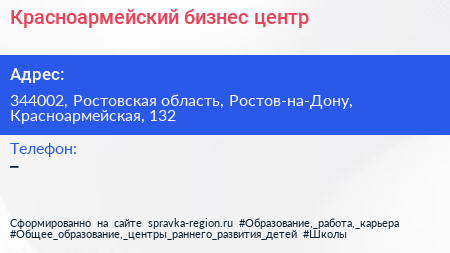 Красноармейский, бизнес-центр по адресу 344002, Ростовская область, Ростов-на-Дону, Красноармейская, 132 в дальнейшем Организация, размещена в следующих категориях: