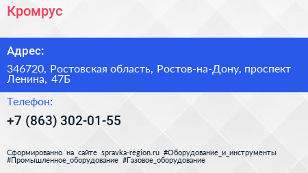 Кромрус по адресу 346720, Ростовская область, Ростов-на-Дону, проспект Ленина, 47Б в дальнейшем Организация, размещена в следующих категориях: