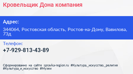 Кровельщик Дона, компания по адресу 344064, Ростовская область, Ростов-на-Дону, Вавилова, 73д в дальнейшем Организация, размещена в следующих категориях: