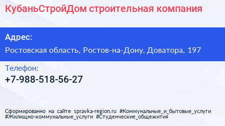 КубаньСтройДом, строительная компания по адресу Ростовская область, Ростов-на-Дону, Доватора, 197 в дальнейшем Организация, размещена в следующих категориях: