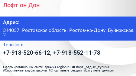 Лофт он Дон по адресу 344037, Ростовская область, Ростов-на-Дону, Буйнакская, 2 в дальнейшем Организация, размещена в следующих категориях: