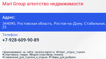 Mari Group, агентство недвижимости по адресу 344090, Ростовская область, Ростов-на-Дону, Стабильная, 21 в дальнейшем Организация, размещена в следующих категориях: