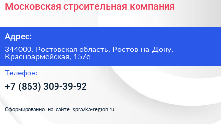 Московская строительная компания по адресу 344000, Ростовская область, Ростов-на-Дону, Красноармейская, 157е в дальнейшем Организация, размещена в следующих категориях: