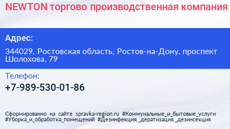 NEWTON, торгово-производственная компания по адресу 344029, Ростовская область, Ростов-на-Дону, проспект Шолохова, 79 в дальнейшем Организация, размещена в следующих категориях: