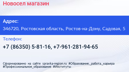 Новосел, магазин по адресу 346720, Ростовская область, Ростов-на-Дону, Садовая, 5 в дальнейшем Организация, размещена в следующих категориях:
