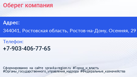 Оберег, компания по адресу 344041, Ростовская область, Ростов-на-Дону, Осенняя, 29 в дальнейшем Организация, размещена в следующих категориях: