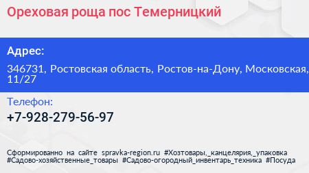 Ореховая роща, пос. Темерницкий по адресу 346731, Ростовская область, Ростов-на-Дону, Московская, 11/27 в дальнейшем Организация, размещена в следующих категориях: