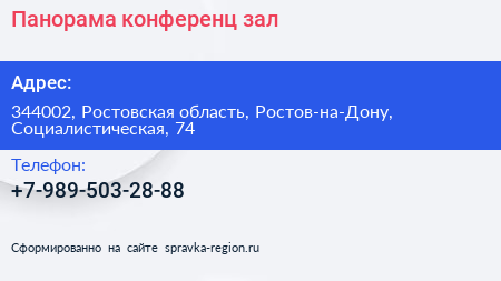 Панорама, конференц-зал по адресу 344002, Ростовская область, Ростов-на-Дону, Социалистическая, 74 в дальнейшем Организация, размещена в следующих категориях: