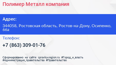 Полимер Металл, компания по адресу 344058, Ростовская область, Ростов-на-Дону, Осипенко, 66а в дальнейшем Организация, размещена в следующих категориях: