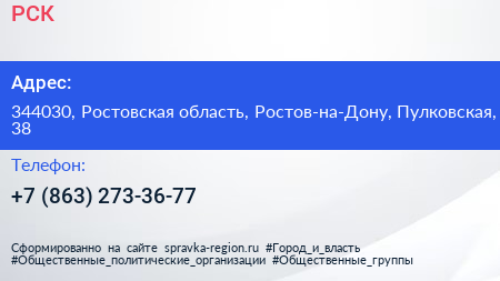 РСК по адресу 344030, Ростовская область, Ростов-на-Дону, Пулковская, 38 в дальнейшем Организация, размещена в следующих категориях:
