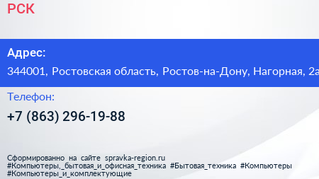 РСК по адресу 344001, Ростовская область, Ростов-на-Дону, Нагорная, 2а в дальнейшем Организация, размещена в следующих категориях:
