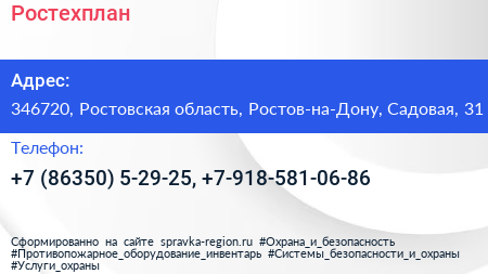 Ростехплан по адресу 346720, Ростовская область, Ростов-на-Дону, Садовая, 31 в дальнейшем Организация, размещена в следующих категориях: