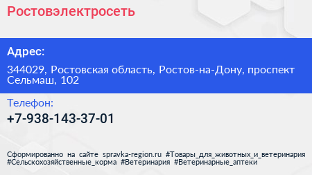 Ростовэлектросеть по адресу 344029, Ростовская область, Ростов-на-Дону, проспект Сельмаш, 102 в дальнейшем Организация, размещена в следующих категориях: