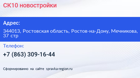 СК10, новостройки по адресу 344013, Ростовская область, Ростов-на-Дону, Мечникова, 37 стр в дальнейшем Организация, размещена в следующих категориях: