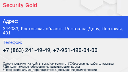Security-Gold по адресу 344033, Ростовская область, Ростов-на-Дону, Портовая, 431 в дальнейшем Организация, размещена в следующих категориях: