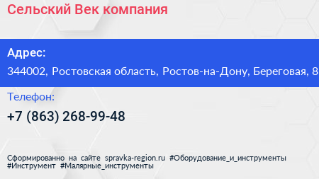 Сельский Век, компания по адресу 344002, Ростовская область, Ростов-на-Дону, Береговая, 8 в дальнейшем Организация, размещена в следующих категориях: