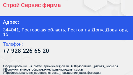 Строй Сервис, фирма по адресу 344041, Ростовская область, Ростов-на-Дону, Доватора, 15 в дальнейшем Организация, размещена в следующих категориях: