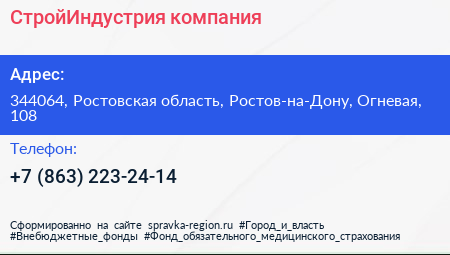 СтройИндустрия, компания по адресу 344064, Ростовская область, Ростов-на-Дону, Огневая, 108 в дальнейшем Организация, размещена в следующих категориях: