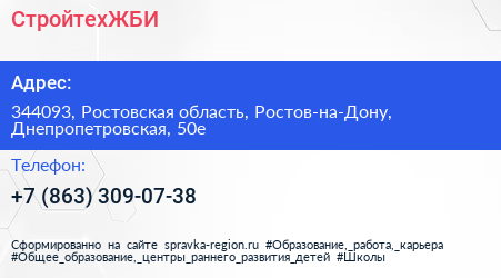 СтройтехЖБИ по адресу 344093, Ростовская область, Ростов-на-Дону, Днепропетровская, 50е в дальнейшем Организация, размещена в следующих категориях: