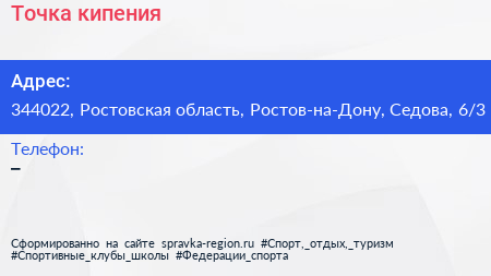 Точка кипения по адресу 344022, Ростовская область, Ростов-на-Дону, Седова, 6/3 в дальнейшем Организация, размещена в следующих категориях: