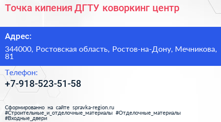Точка кипения ДГТУ, коворкинг-центр по адресу 344000, Ростовская область, Ростов-на-Дону, Мечникова, 81 в дальнейшем Организация, размещена в следующих категориях: