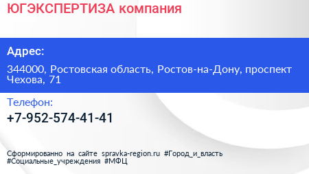 ЮГЭКСПЕРТИЗА, компания по адресу 344000, Ростовская область, Ростов-на-Дону, проспект Чехова, 71 в дальнейшем Организация, размещена в следующих категориях: