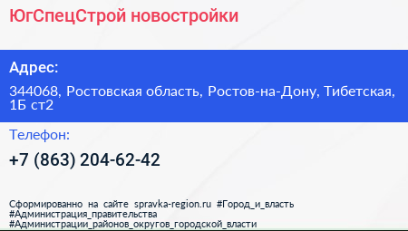 ЮгСпецСтрой, новостройки по адресу 344068, Ростовская область, Ростов-на-Дону, Тибетская, 1Б ст2 в дальнейшем Организация, размещена в следующих категориях: