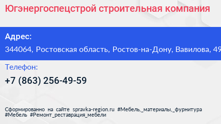 Югэнергоспецстрой, строительная компания по адресу 344064, Ростовская область, Ростов-на-Дону, Вавилова, 49 в дальнейшем Организация, размещена в следующих категориях: