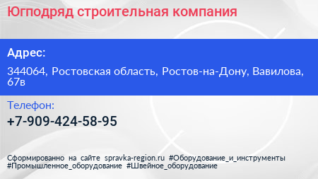 Югподряд, строительная компания по адресу 344064, Ростовская область, Ростов-на-Дону, Вавилова, 67в в дальнейшем Организация, размещена в следующих категориях: