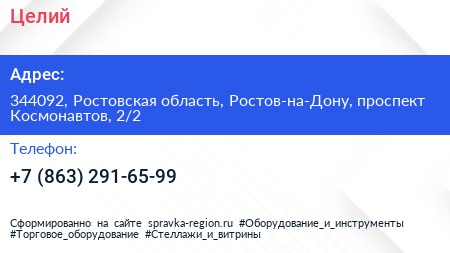 Целий по адресу 344092, Ростовская область, Ростов-на-Дону, проспект Космонавтов, 2/2 в дальнейшем Организация, размещена в следующих категориях: