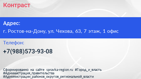 Контраст по адресу г. Ростов-на-Дону, ул. Чехова, 63, 7 этаж, 1 офис в дальнейшем Организация, размещена в следующих категориях: