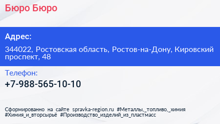 Бюро-Бюро по адресу 344022, Ростовская область, Ростов-на-Дону, Кировский проспект, 48 в дальнейшем Организация, размещена в следующих категориях: