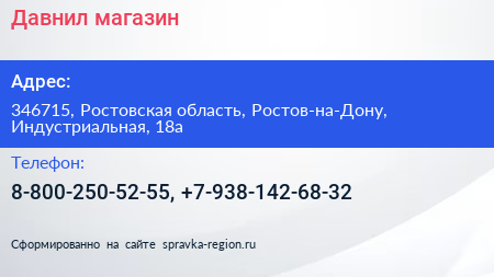 Давнил, магазин по адресу 346715, Ростовская область, Ростов-на-Дону, Индустриальная, 18а в дальнейшем Организация, размещена в следующих категориях:
