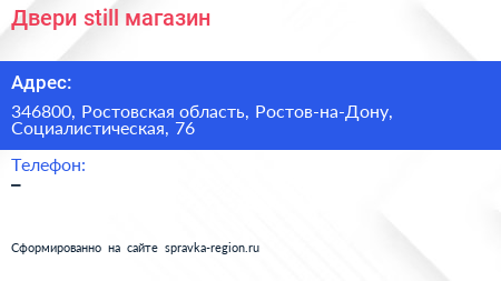 Двери still, магазин по адресу 346800, Ростовская область, Ростов-на-Дону, Социалистическая, 76 в дальнейшем Организация, размещена в следующих категориях: