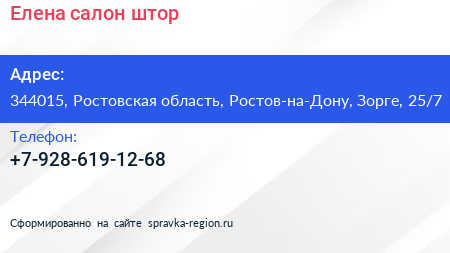 Елена, салон штор по адресу 344015, Ростовская область, Ростов-на-Дону, Зорге, 25/7 в дальнейшем Организация, размещена в следующих категориях: