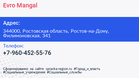 Evro-Mangal по адресу 344000, Ростовская область, Ростов-на-Дону, Филимоновская, 341 в дальнейшем Организация, размещена в следующих категориях: