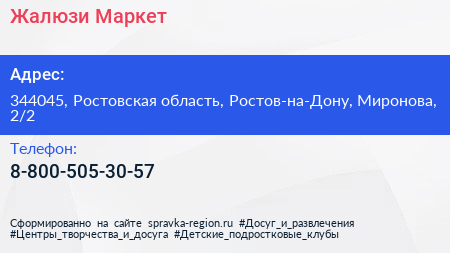 Жалюзи Маркет по адресу 344045, Ростовская область, Ростов-на-Дону, Миронова, 2/2 в дальнейшем Организация, размещена в следующих категориях: