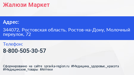 Жалюзи Маркет по адресу 344072, Ростовская область, Ростов-на-Дону, Молочный переулок, 72 в дальнейшем Организация, размещена в следующих категориях: